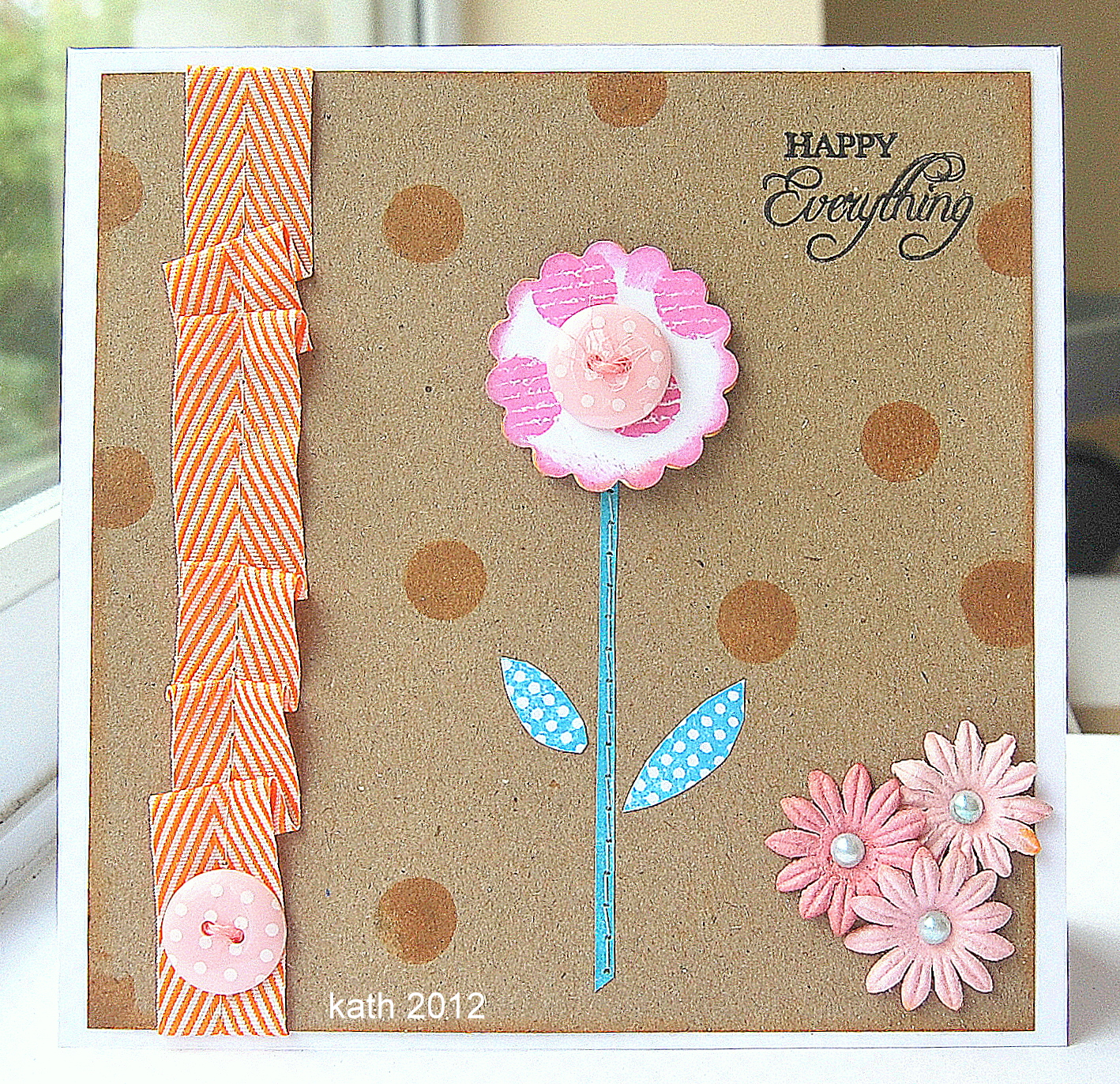 Dawny P added peacock blue seam binding to this zingy eye catching card!