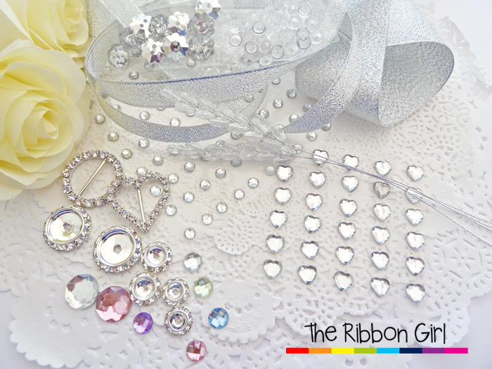 (Gingham ribbon, polka dot button and stick on gems)